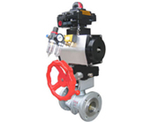 采用新型系列GT型氣動執行器,有雙作用式和單作用式(彈簧復位),齒輪齒條傳動,安全可靠;大口徑閥門采用系列AW型氣動執行器拔叉式傳動,結構合理,輸出扭矩大,有雙作用式和單作用式。