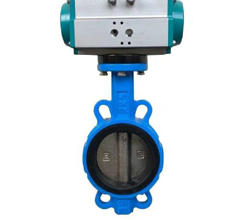 4、安裝完畢后,對D671J10-氣動蝶閥進行調(diào)試(正常情況下供氣壓力為0.4~0.6MPa),調(diào)試運行時須手動操作電磁閥啟閉(將電磁閥線圈失電后手動操作方可有效),觀察D671J10-氣動蝶閥的啟閉情況。如果在調(diào)試運行過程中發(fā)現(xiàn)閥門在啟閉過程初始時有些吃力,之后正常,則需要將氣缸行程調(diào)小(把氣缸兩端行程調(diào)節(jié)螺絲同時往里調(diào)一點,調(diào)整時需將閥門運行到開位置,然后將氣源關(guān)掉再調(diào)),閥門啟閉動作順滑且關(guān)閉無泄漏。還需要注意的是,可調(diào)型消音器可以調(diào)節(jié)閥門的啟閉速度,但不可調(diào)得過小,否則可能引起閥門不動作。
