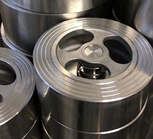 對夾式止回閥是一種通用單向流體閥門。其重量輕,體積小,容易安裝在法蘭之間,閥門內(nèi)部由兩個半圓彈簧和板面組成,用銷子固定在閥體上彈簧形變使閥板關(guān)閉,流體壓力又使其開啟彈簧的形變很快,這樣能保護(hù)管道免受水錘破壞。